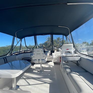 For those that want an enhanced experience, we would love to welcome you onboard Serenity Blu! On our 48 ft Mainship Trawler, you can choose to hang out upstairs in the wheelhouse, on the bow of the boat to catch some sun or on the aft deck. You will have access to your own cabin and head for changing purposes or to get out of the sun an